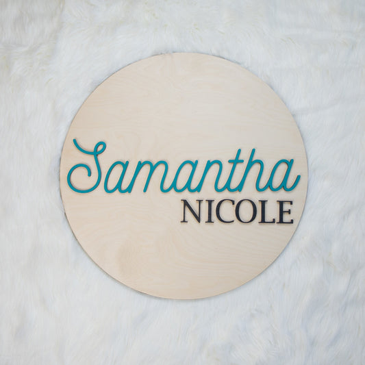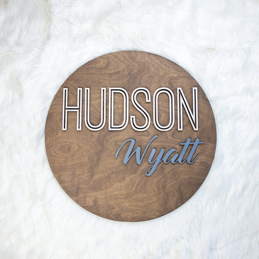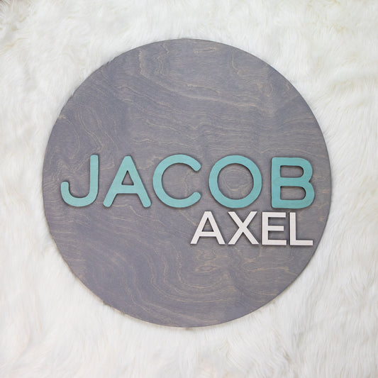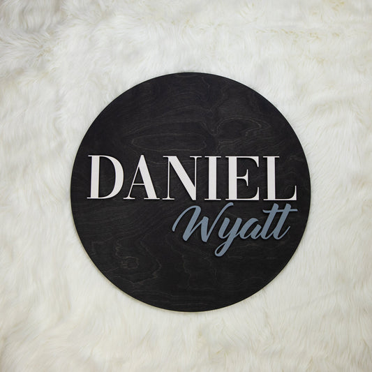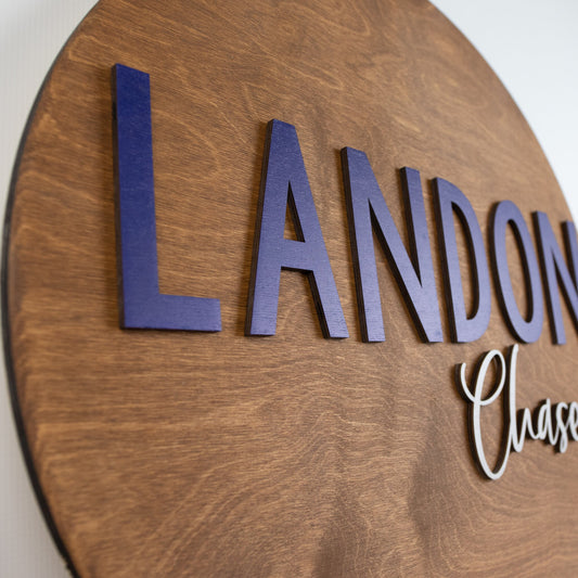 Round 3D Wood Nursery Name Sign, 15-24 Inch