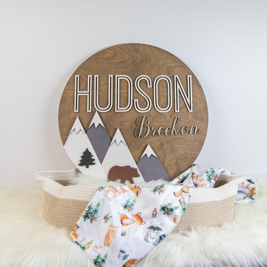 Woodland Mountain Nursery 3D Sign, 15-24 Inch Personalized Wooden Name Sign
