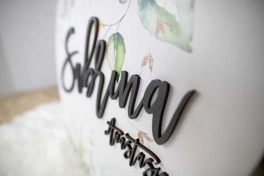 Round Wood 3D Nursery Name Sign,Greenery Ivy