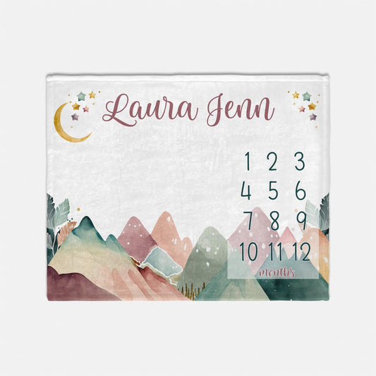 Girl Mountains Baby Milestone Blanket, Boho Adventure M33
