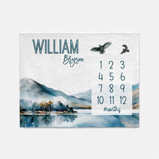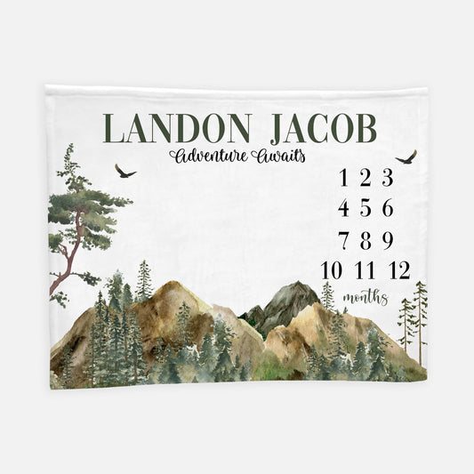 Mountains Baby Milestone Blanket, Adventure Awaits Boy W8