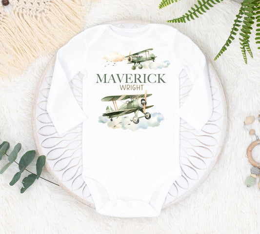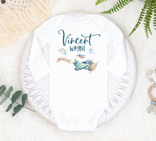 Airplane Baby Bodysuit, Pregnancy Reveal Baby Shirt, T68