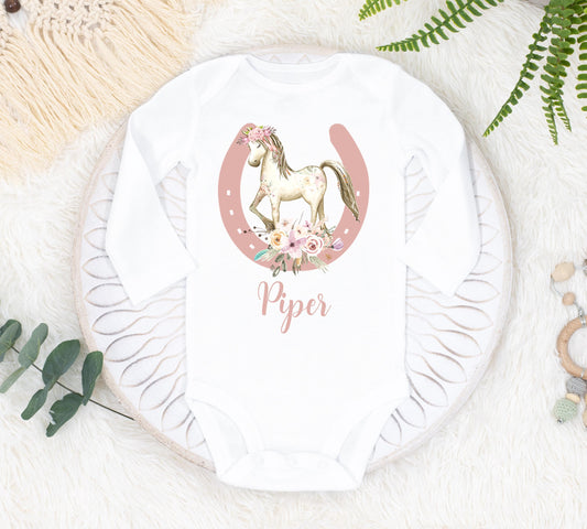 Horse Baby Bodysuit, Floral Pony Bodysuit, C10