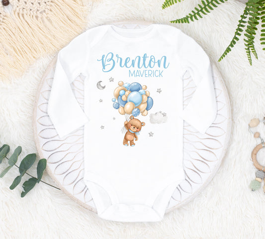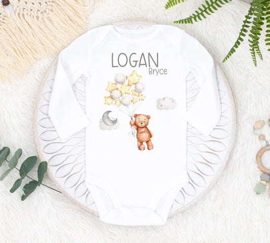 Bear Lullaby Baby Bodysuit, Bear Balloon Baby Outfit, B36