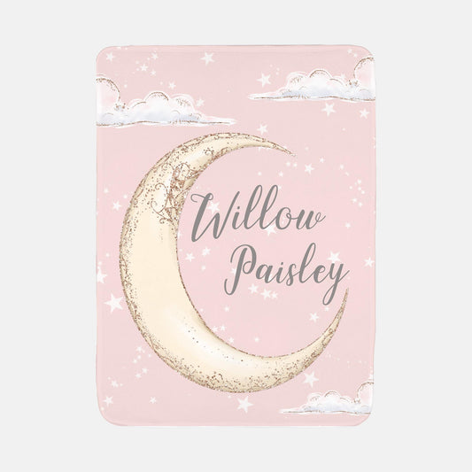 Luna Moon and Stars Baby Blanket, Pink and Gold T59