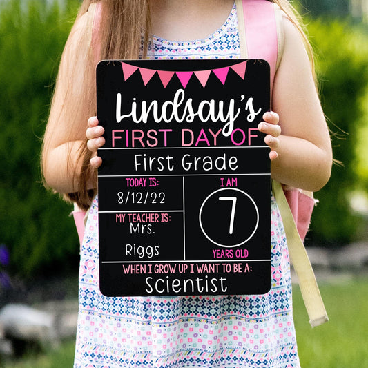 Reusable First and Last Day of School Sign, Liquid Chalk Blue and Pink