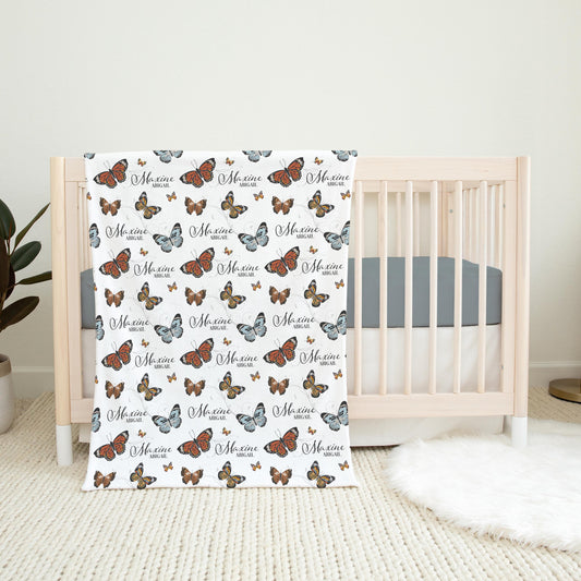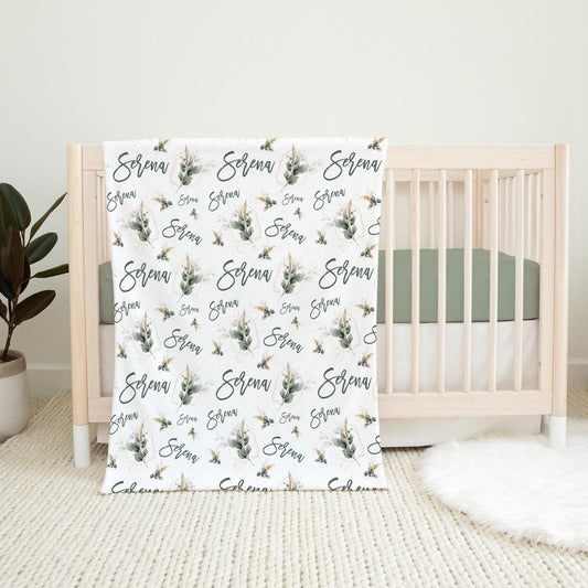 Boho Highland Cow Personalized Baby Blanket, Farm Animal Theme, C19