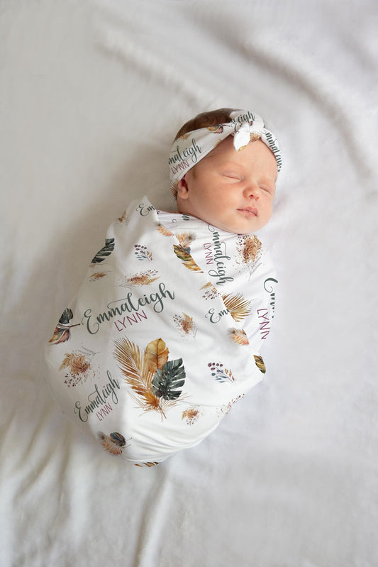 Boho Palm and Pampas Grass Swaddle Set, F77