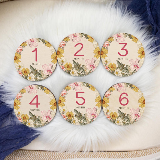 Boho Vintage Floral Wooden Birth Stat Sign, F28