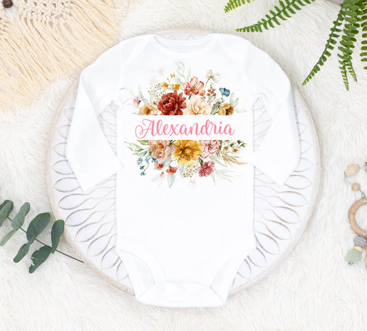 Wild Flower Baby Bodysuit, Girl Boho Baby Outfit F99