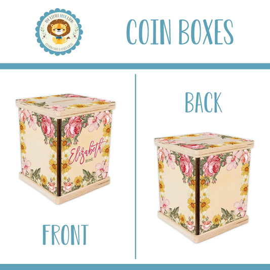 Wild flower Piggy Bank, Boho Coin Bank, F28