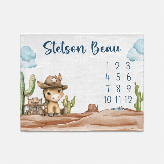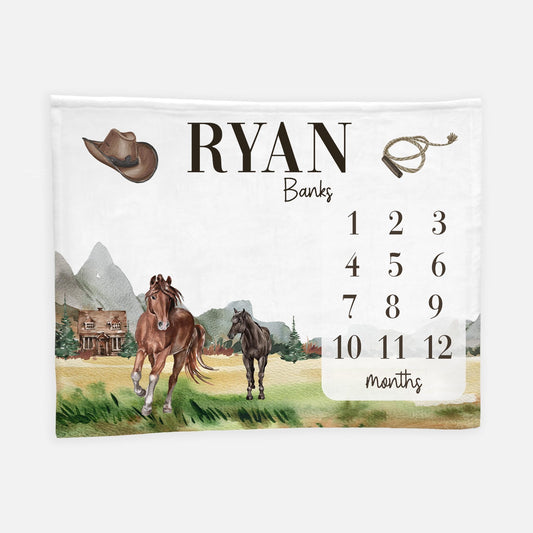 Cowboy Mountain Horse Baby Milestone Blanket, C36