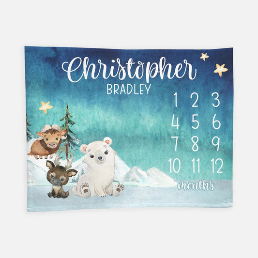 Arctic Animal Baby Milestone Blanket, Polar Bear Gender Neutral B45