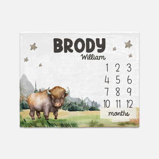 Badger Milestone Blanket, Baby Boy Woodland Badger Blanket, W59