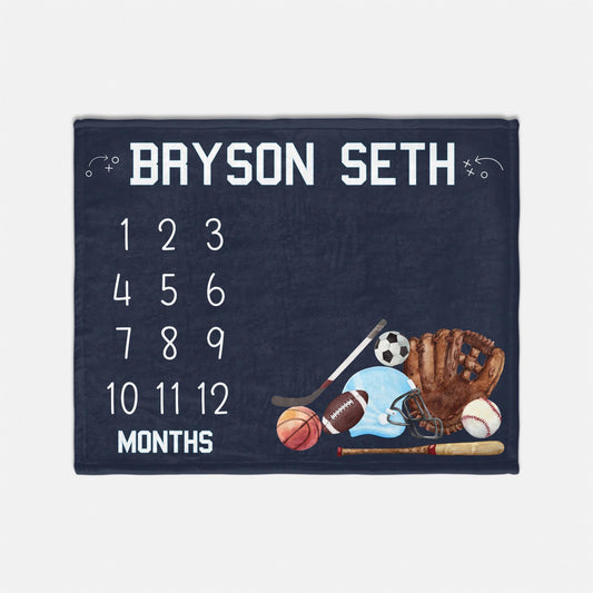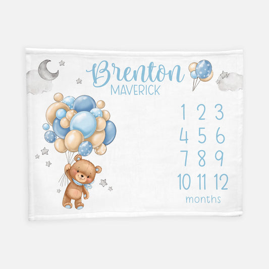 Boy Lullaby Bear Balloon Baby Milestone Blanket, T57