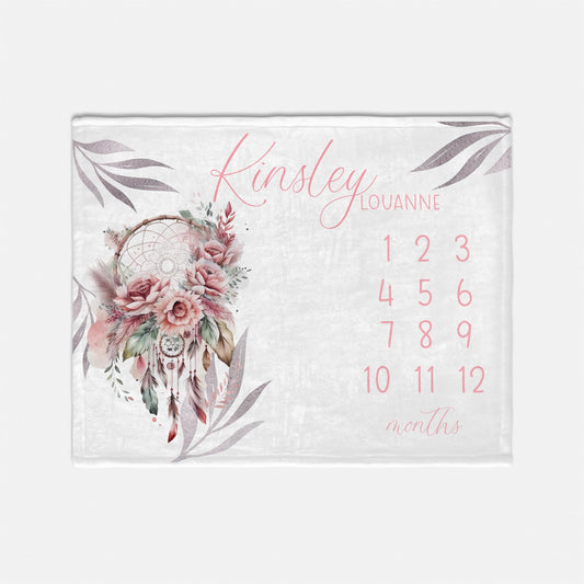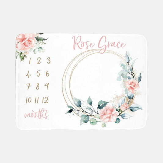 Elegant Rose and Greenery Nursery Baby Milestone Blanket, F103