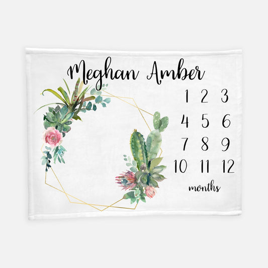 Elegant Nursery Greenery Baby Milestone Blanket, F58