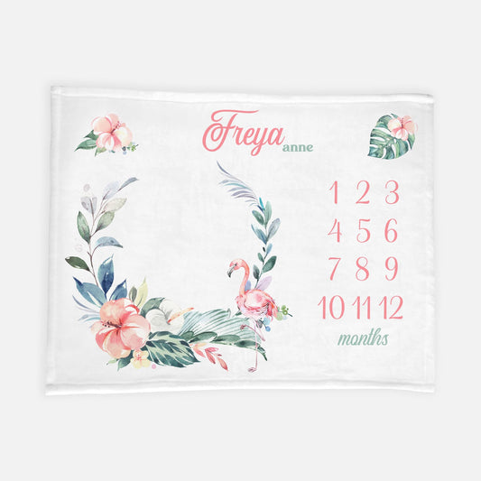 Flamingo Wood Baby Milestone Blanket, Tropical, G15