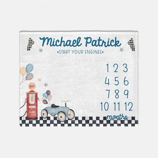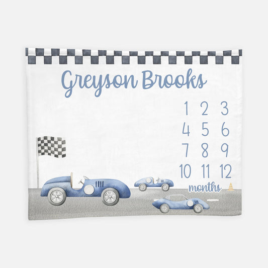 Race Car Baby Milestone Blanket, Vintage Race Car B66