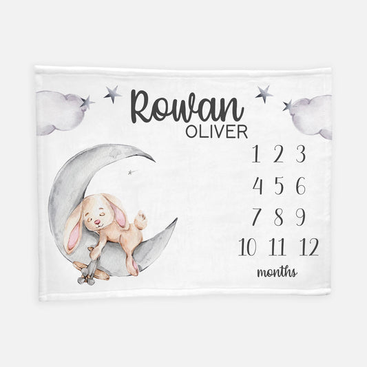 Rabbit Moon and Stars Baby Milestone Blanket, B56