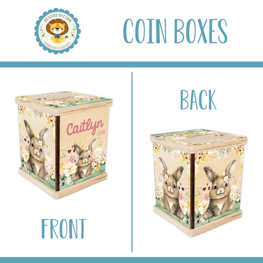 Girl Floral Bunny Piggy Bank, Rabbit Nursery G54