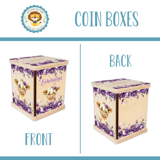 Highland Cow Piggy Bank, Girl C46