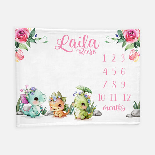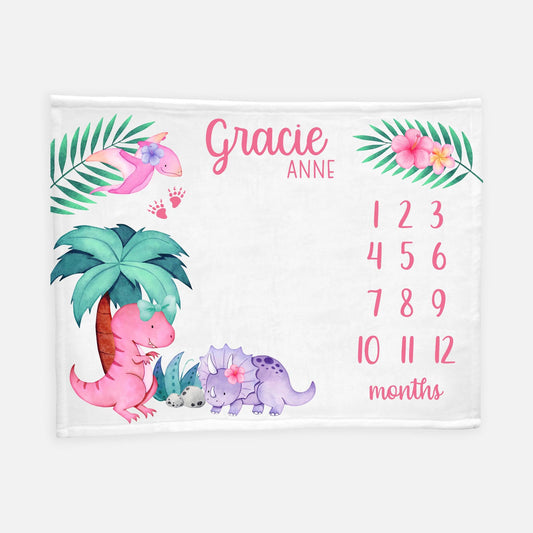 Girl Dinosaur Baby Milestone Blanket, G57