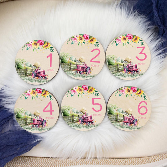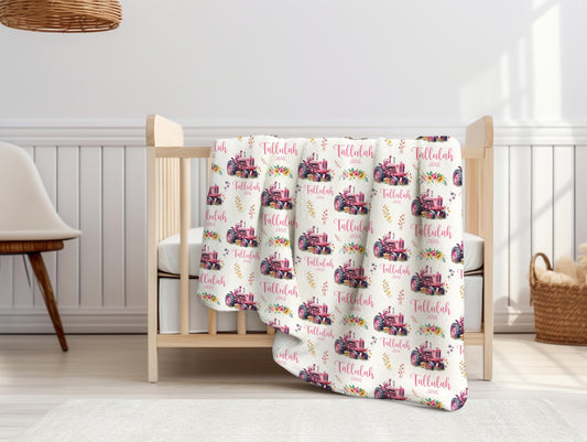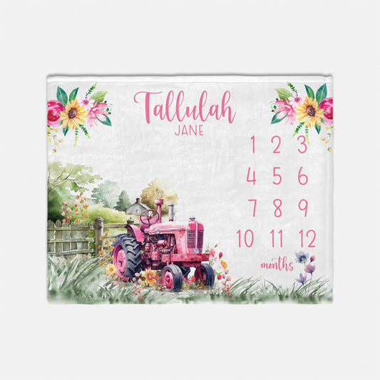 Pink Tractor Baby Milestone Blanket, Farm Girl C51