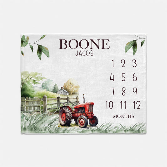 Sheep Baby Milestone Blanket, Boy Farm Theme C26