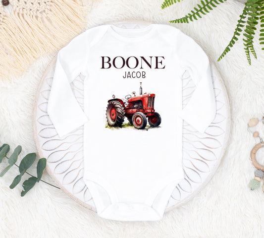 Red Tractor, Barn, and Farm Wooden Birth Stat Sign C12