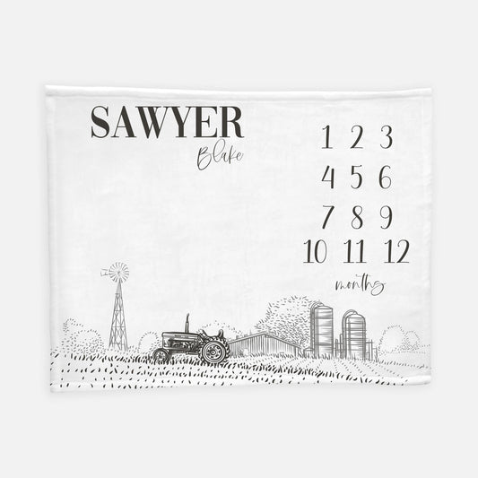 Tractor Baby Milestone Blanket, Farm Theme C32