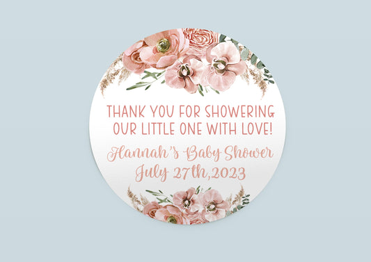 Boho Pampas Grass Baby Shower Favor Stickers and Thank You Labels, Boho Theme, F33