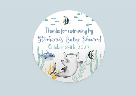 Shark Baby Shower Favor Stickers, Under The Sea Baby Shower, O3
