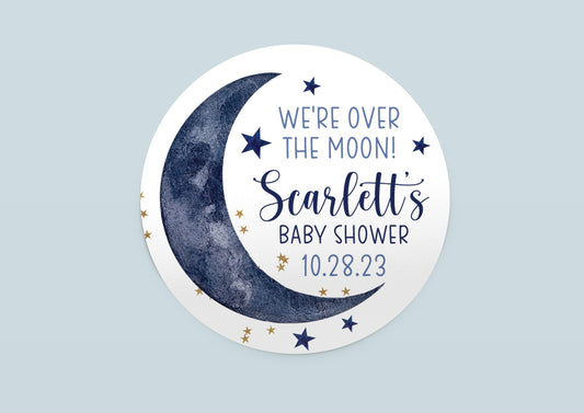 Moon and Stars Baby Shower Favor Stickers and Thank You Labels, T10