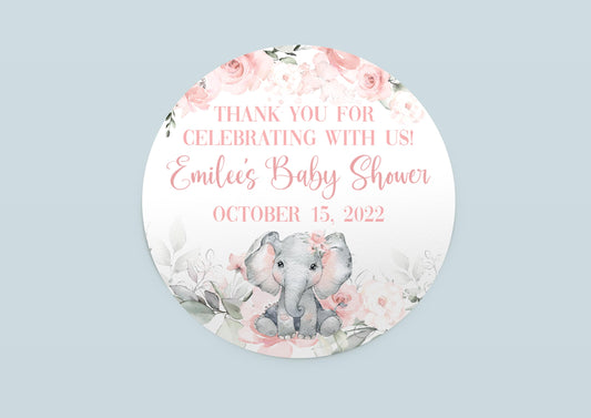 Girl Safari Baby Shower Favor Stickers, Elephant S52