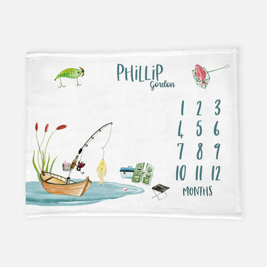 Fishing Baby Milestone Blanket, O24