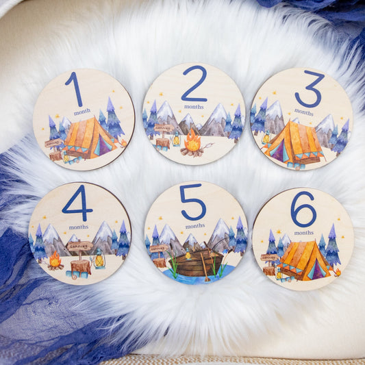 Camping Wood Milestone Cards, Mountain and Fishing Theme M14