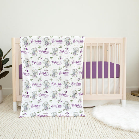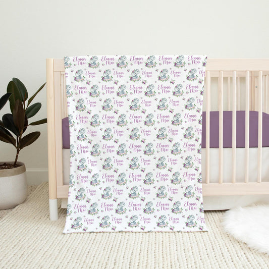 Purple Floral Elephant Swaddle Set, Floral, S51