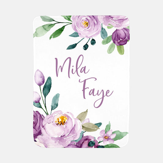 Violet and Plum Girl Blanket, Rose Floral Crib Bedding, F21