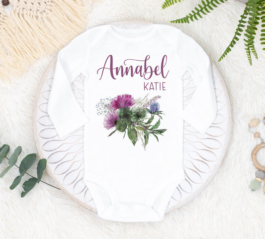 Thistle Baby Bodysuit, Thistle Floral Baby Outfit, F111