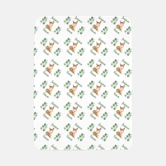 Woodland Fawn Nursery Baby Swaddle Blanket, Eucalyptus Floral Blanket W17