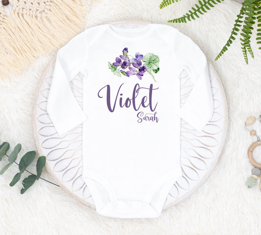 Violets Baby Bodysuit, Floral Baby Bodysuit F72