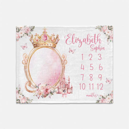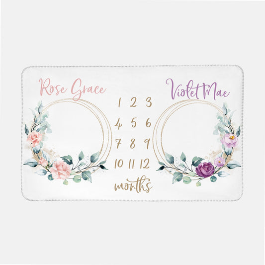 Rose Twin Baby Milestone Blanket, Elegant Floral Girl