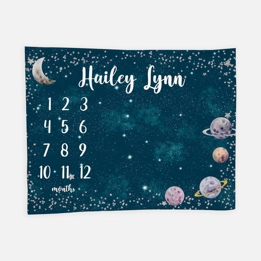 Outer Space Baby Milestone Blanket, Stars and Planets T21