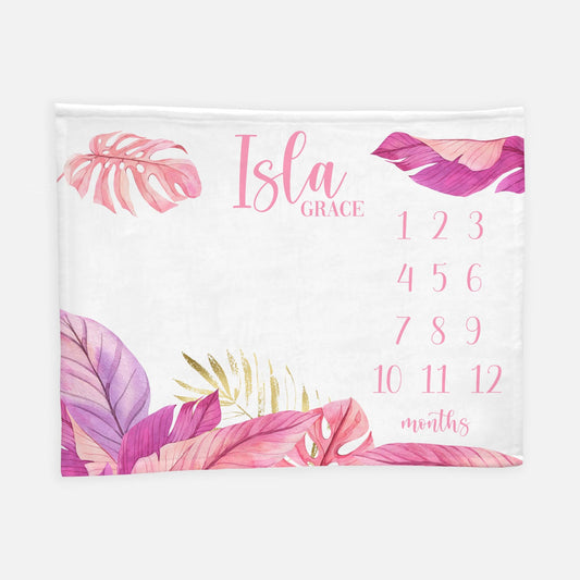 Pink Tropical Palm Milestone Blanket, Girl G56