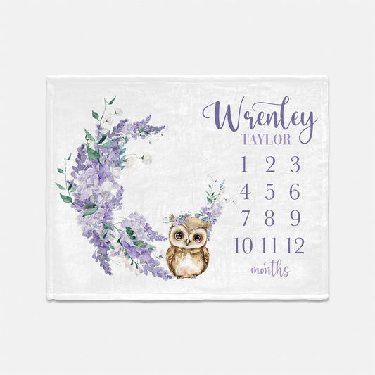 Owl Girl Milestone Blanket, Wisteria Floral, W54