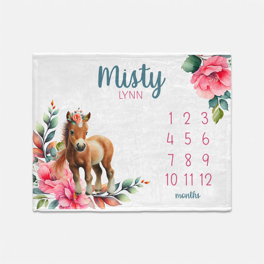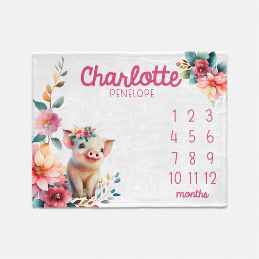 Piglet Floral Baby Milestone Blanket, Girl Farm C50