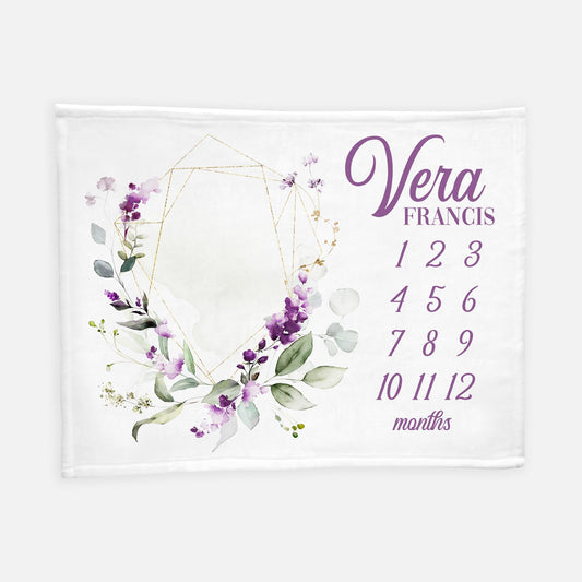 Lavender Flower Baby Milestone Blanket, Girl F89