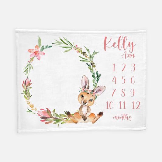 Kangaroo Baby Milestone Blanket, Girl S43