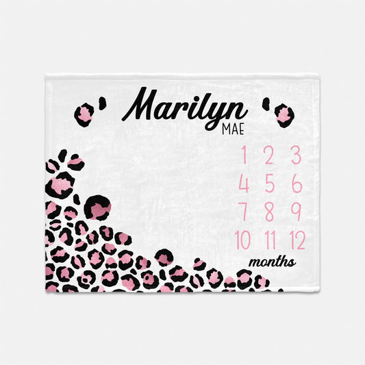 Leopard Print Baby Milestone Blanket, Girl G84